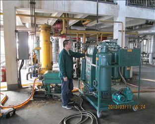 在設(shè)備運(yùn)行過(guò)程中,潤(rùn)滑油時(shí)刻在發(fā)生變化,會(huì)有鐵屑、灰塵、水分等進(jìn)入潤(rùn)滑油,時(shí)刻檢測(cè)油品,當(dāng)油品達(dá)到最底使用標(biāo)準(zhǔn)時(shí),及時(shí)更換新油,同時(shí)清理油箱;有條件的企業(yè)也可用濾油機(jī)凈化臟油,使其油品達(dá)到相關(guān)標(biāo)準(zhǔn),循環(huán)使用。